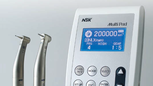 The NSK Multi Pad is a central control panel for operating electric micromotors and ultrasonic scalers built into a dental unit. It allows dentists to adjust speed, torque, and mode settings from one easy-to-use interface, keeping the operatory tidy and efficient.