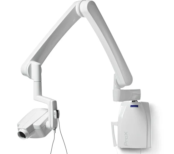 The Planmeca ProX is a versatile intraoral X-ray unit delivering precise, stable imaging with a zero-drift arm. It supports digital sensors, phosphor plates, and traditional film, with pre-set exposures for adults, adolescents, and children, plus manual control. Safety features include multiple cone lengths and optional rectangular collimators, while smooth surfaces and flexible mounting options ensure hygiene and adaptability. Adjustable voltage, current, and a fine focal spot provide consistently high-quality X-ray images.