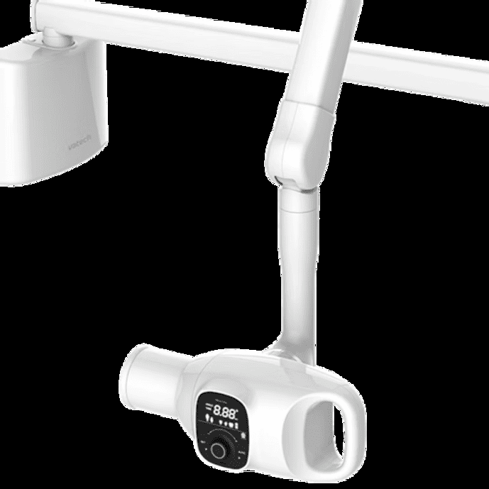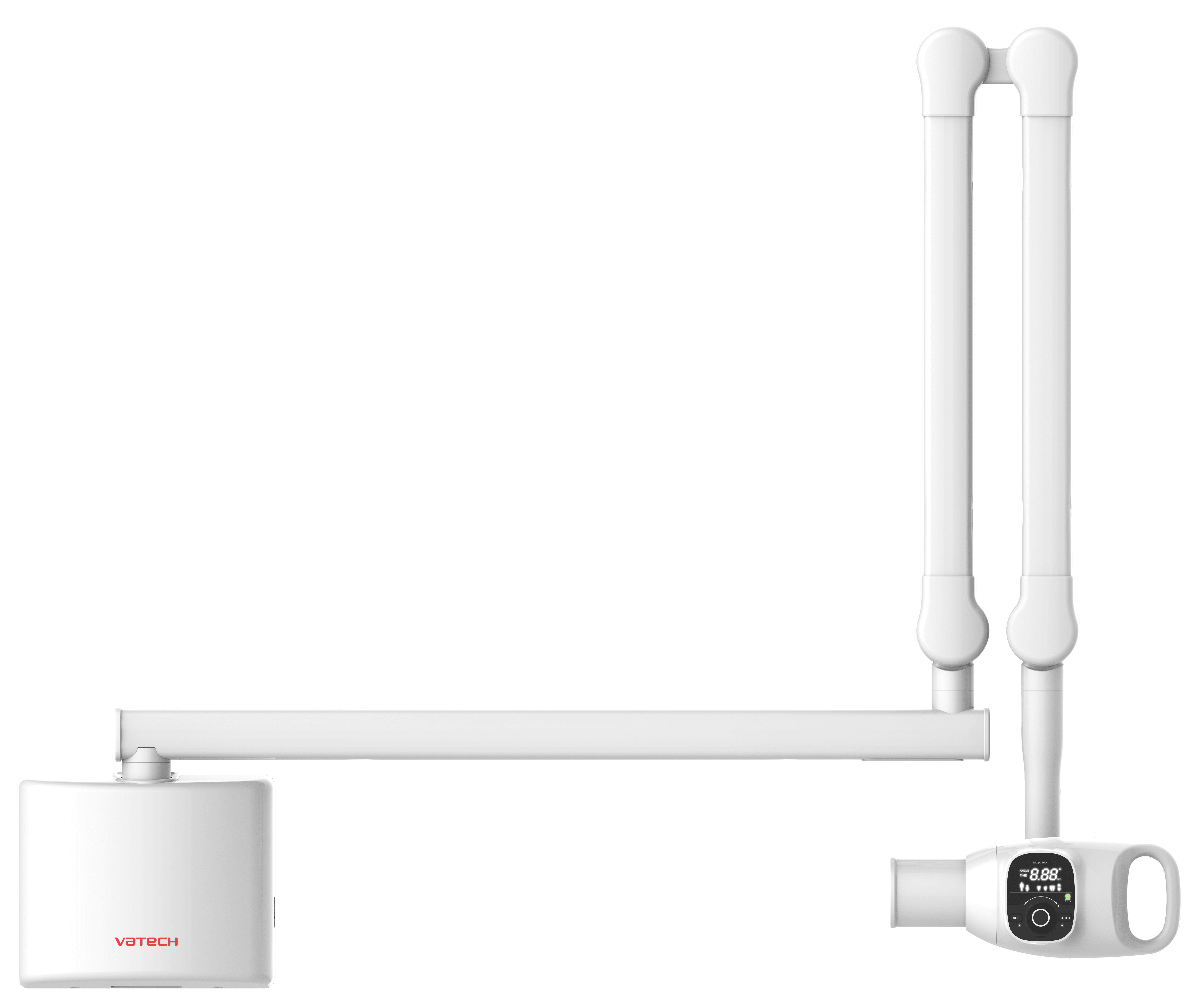 Vatech EzRay Airwall is a wall-mounted intraoral X‑ray unit that is lightweight and easy to position, thanks to carbon‑nano technology. It has a 0.4 mm focal spot for clear images and a Smart Dial control on the tube head to make operation faster and simpler.